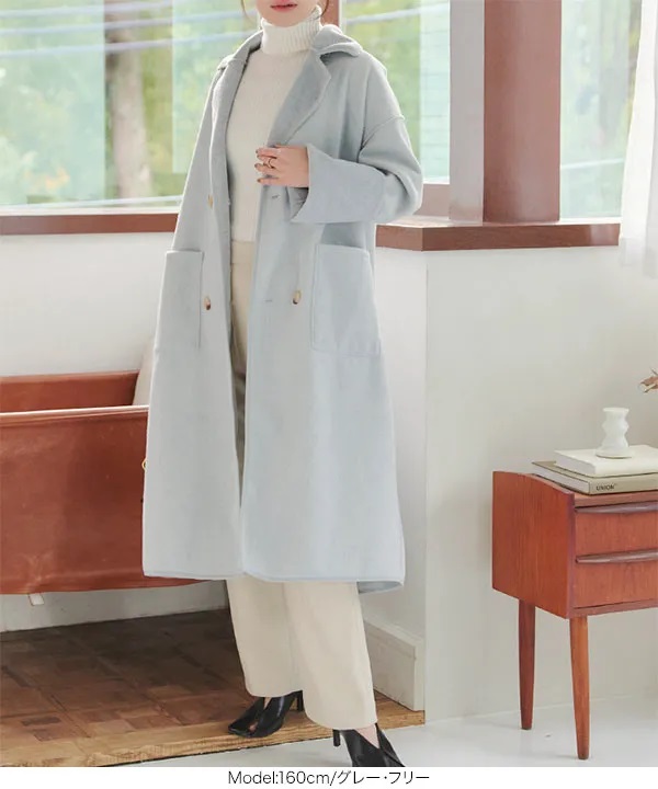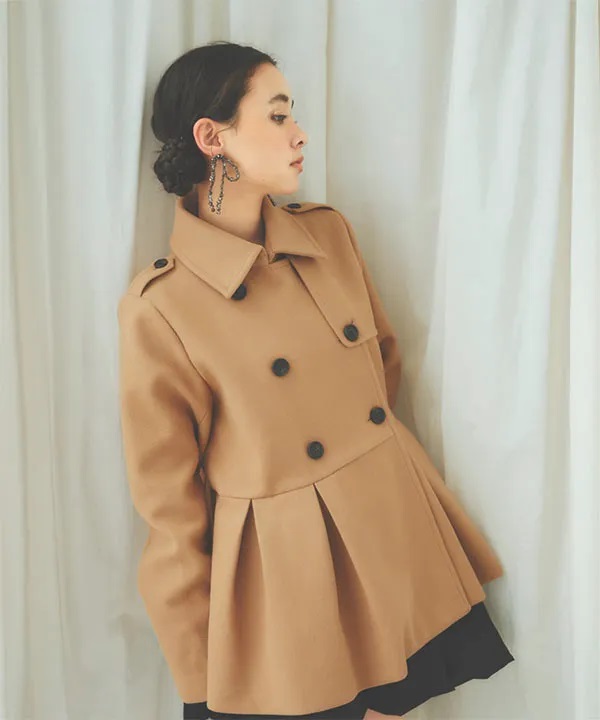 ゆったりとしたサイズ感が特徴で、インナーダウンや厚手のニットの上にも羽織っていただけます。少し長めの丈感ですがセンターバックにスリットがはいっているので動きやすさを確保し、脚さばきも◎