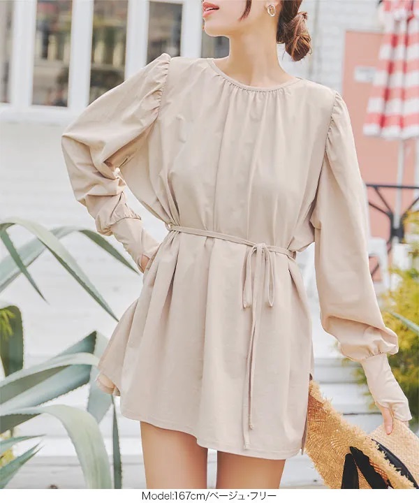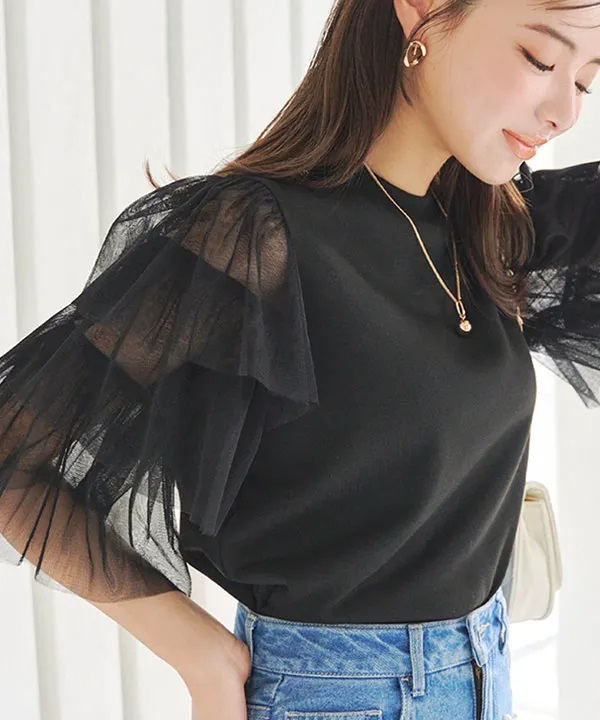程よいシアー感のオーガンジー素材にフロッキードットが大人の表情をプラス。レイヤード風の2枚仕立てなのでボディーラインもカバーし、肌の透け感も気にせず着用いただけます。何にでも合わせやすいモノトーンカラーでデイリー使いに重宝します◎