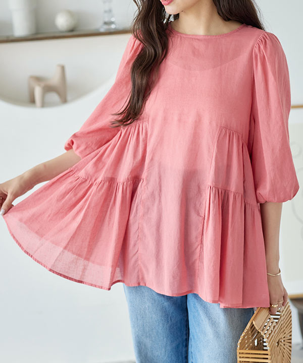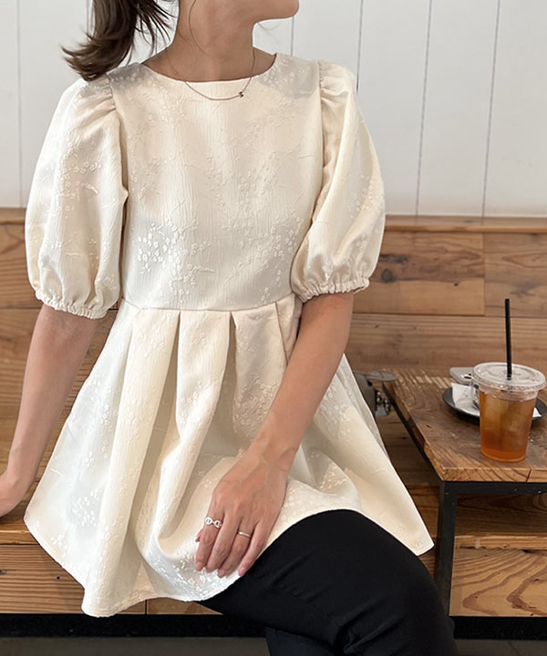 通気性に優れ、清涼感のあるガーゼ調素材。たっぷり生地を使いボリュームをもたらし、体型カバーも叶えてくれる一着。ウエストは全ゴム仕様で快適な着用感。ポケット付きで利便性も兼ね備えた仕上がりです◎。
