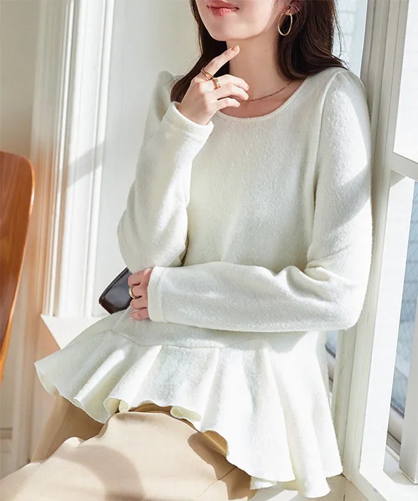 温かみのある起毛素材。ハリ感のある立体フォルムでシルエットをキープし嬉しい体型カバー効果も。すっきりとしたウエストラインでインスタイルも美しく、ウエストマークにもなるベルト合わせもおすすめです◎