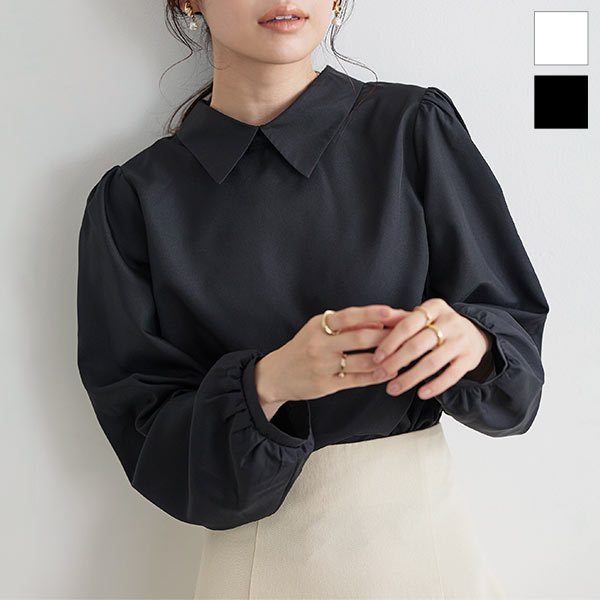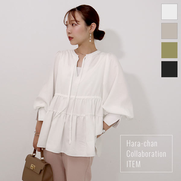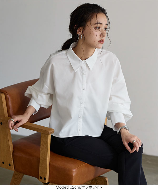 程よい透け感のシアー素材。全体的にゆとりをもたせたシルエットで、ボディラインを拾わないので、気負いせず楽にご着用いただけます。