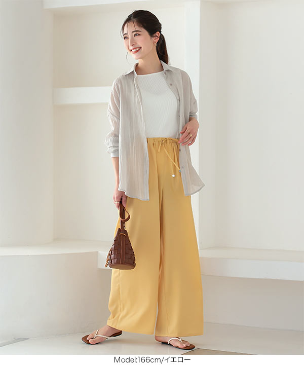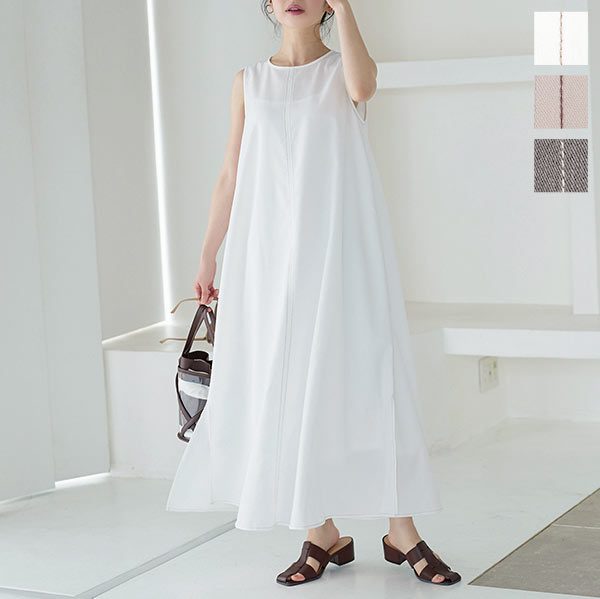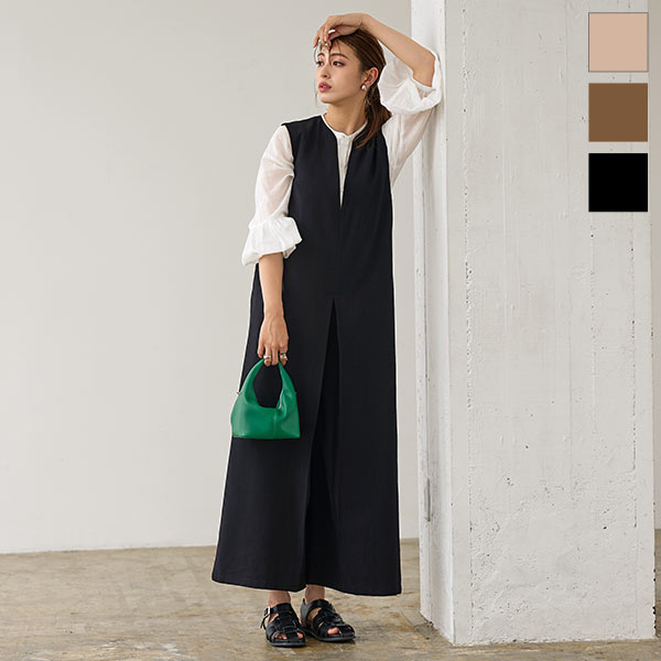 着心地涼やかなリネン混素材を使用。バックリボンできゅっと絞れるウエスト部分や前後に入ったタックデザインがメリハリのあるシルエットを作り出してくれます。2サイズ展開からお選びいただけます。