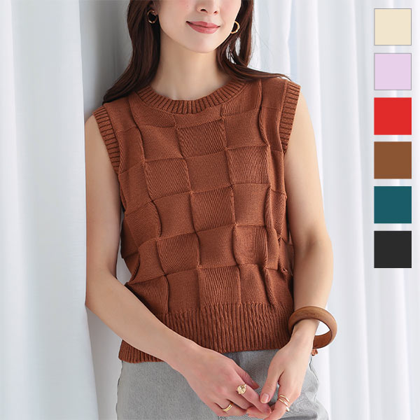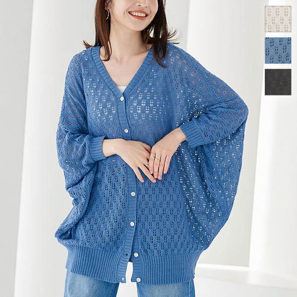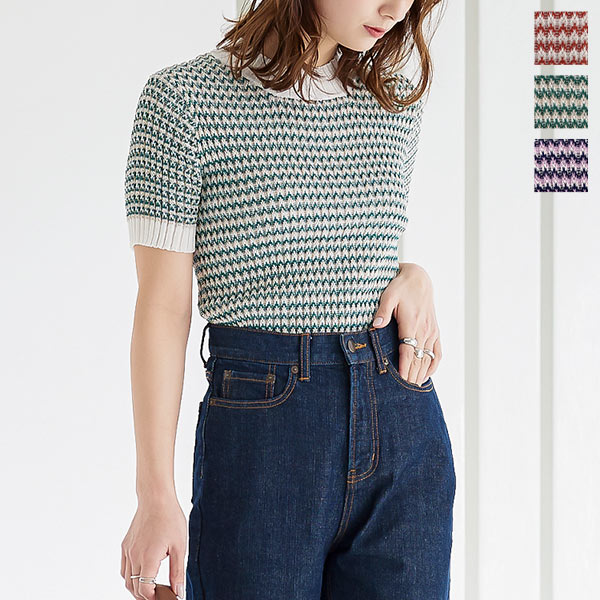 涼しげな編み模様がシーズンムード高まる素材感。程よい着丈でバランスもとりやすく、様々なボトム合わせで使いやすいのが嬉しいポイント。ソフトなVネック開きが、顔周りをすっきり見せてくれます。