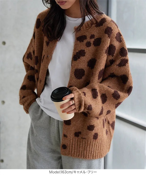 レオパードシャギーニットカーディガン