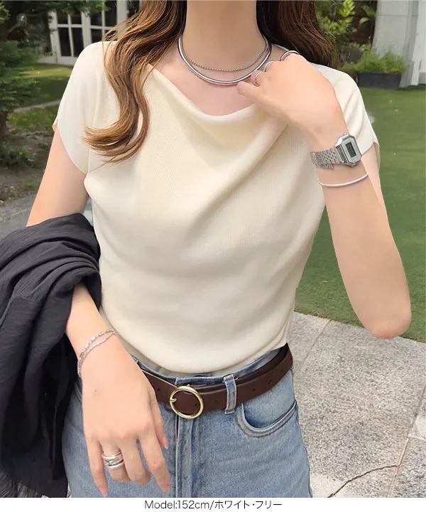 デイリー使いしやすいよう、身頃はきれいめのカットソー生地。ほどよいゆとりがあり、身体のラインを拾いにくいシルエットです。ふんわり広がるチュール袖が腕まわりを華奢に見せてくれます。着丈は長すぎず短すぎず、アウトで着てもバランス良く決まり、さりげなくこなれ感を演出。甘さとカジュアルの絶妙なバランスで、デイリーコーデに取り入れやすい一枚です。