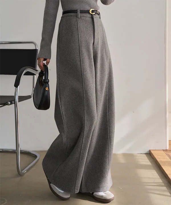 スタイルアップ見え叶えるストレートワイドパンツ。センターシームの縦ラインが美脚シルエットを演出し穿くだけで美しい佇まいに。上品な色合いと雰囲気が大人っぽく、通勤通学、学校行事、オフィススタイルまでどんなシーンにもフィットする一本です。