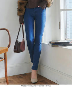 寒い季節の味方。裏起毛で冷えない、暖かスキニーデニムパンツ。ゆるニットでメリハリをつけたコーデがおすすめです。