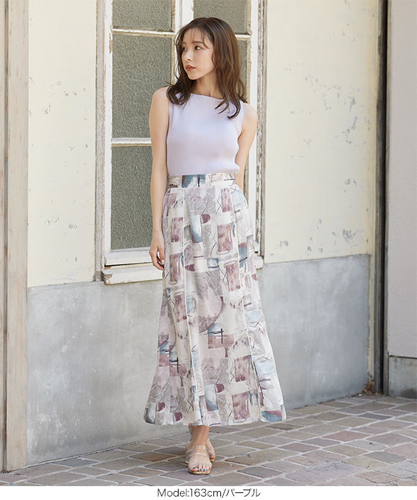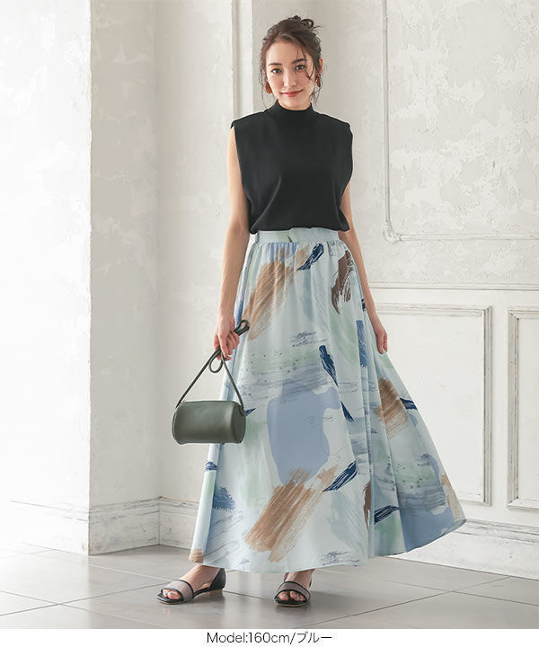 ニュアンス感溢れるアート柄が、コーデの主役になるスカートの登場。