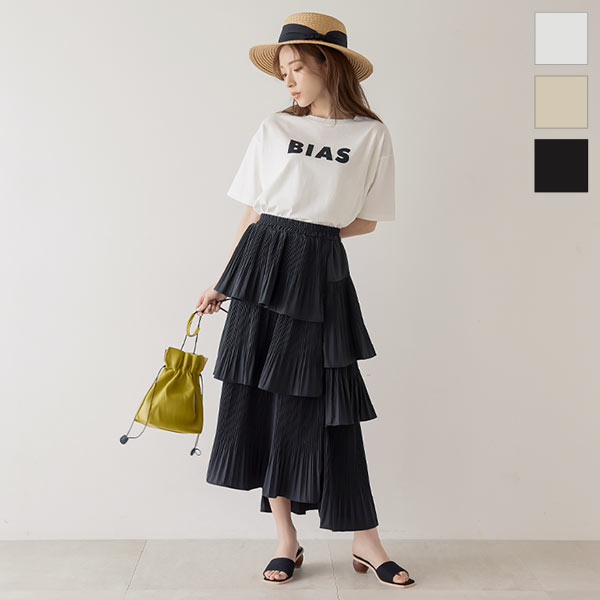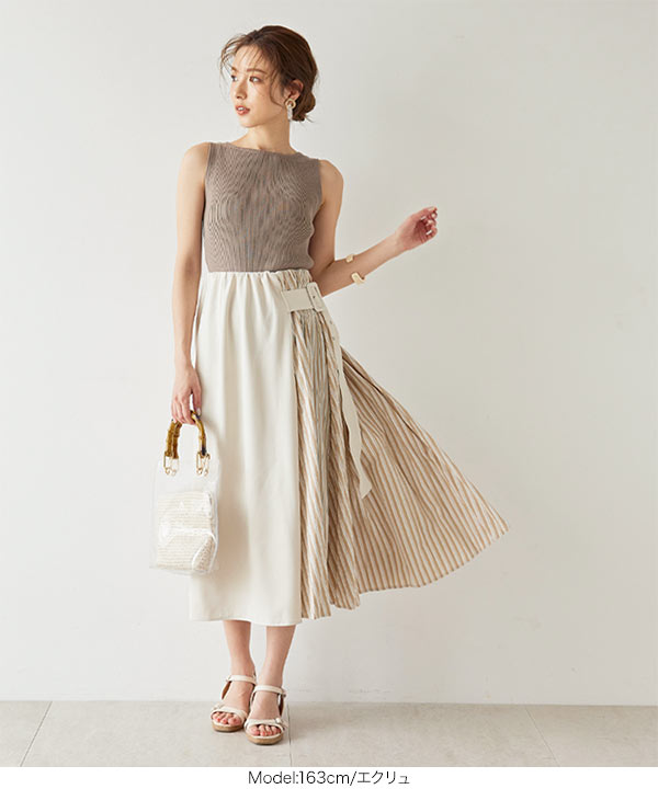 印象的な柄でコーディネートに取り入れやすく、涼し気なプリントがこれからの季節にぴったりです。裾に向かって広がるマーメードシルエットが大人っぽくて好印象。切り替えにパイピングを挟み込み、さりげないアクセントにしています。
