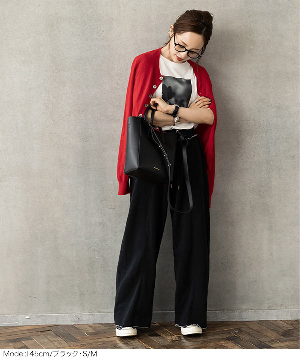 しっかりと肉厚感のある裏起毛カットソー素材。ウエスト部分はバックゴム仕様なので履き心地らくちんです。サイドポケット付きなのも嬉しいポイント。