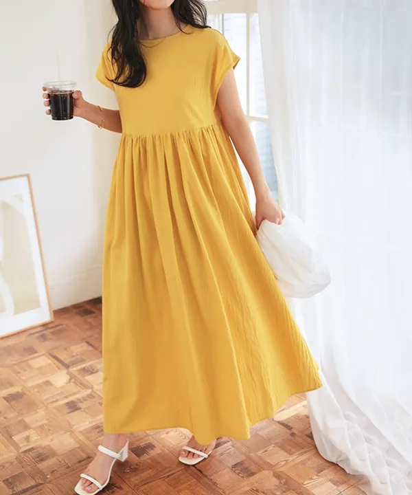 [ノースリーブ/フレンチスリーブ]マキシ丈ボリュームワンピース
