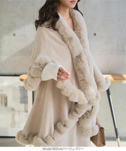 優雅な佇まいで冬の装いを彩るケープコート。リッチな質感のボリュームファーがエレガントさを引き立てシーズンムードあふれる一枚。身体を包み込むようにフィットし、着るだけで華やかに着映えるファーケープです◎