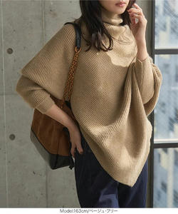 ゆったりとしたシルエットで体のラインを拾わず、リラックス感のある着心地。ヒップにかかる丈感で安心感があり、ボトムを選ばずスタイリングしやすいのも魅力。ハイネックは締め付け感がなく、首元を暖かく包み込みながら上品な印象をプラス。ゆるやかで高見えするシルエットが、大人のきれいめコーデを引き立ててくれる一枚です。