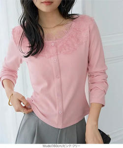 上品で立体感のあるシアーレースがお顔周りを華やかに女性らしさ引き立てるデザインロンT。深Uネックはデコルテをすっきりと華奢見えも叶えてくれるネックラインに。甘くなりすぎずデイリーに着こなしやすい大人のフェミニントップスです。